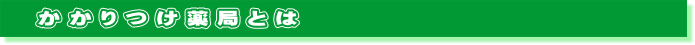 かかりつけ薬局とは、どこの医療機関で処方せんをもらった場合でも、必ずそこへ持っていき、薬をもらうように決めた薬局のことです。 「かかりつけ医」が普段の健康管理や万が一病気になったときの心強い味方だとすれば、「かかりつけ薬局」は薬の面から健康管理をサポートする、皆様の身近なパートナーとなります。